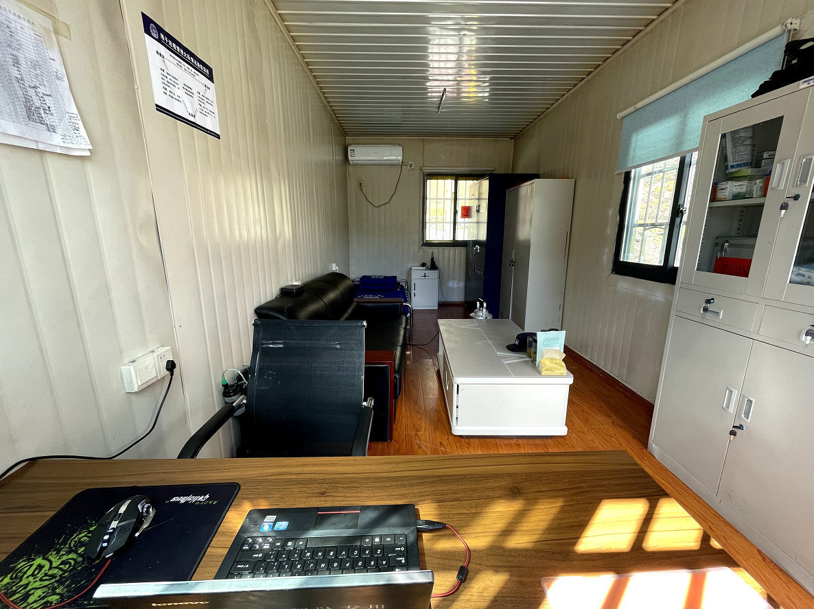 “最開始,我們是住在旁邊那個(gè)鐵皮房子里,晚上睡覺時(shí)還漏風(fēng),取暖基本靠“抖”,睡在被窩里縮成一團(tuán),直到睡熱了之后才能把身子伸直。在這里執(zhí)勤就沒有脫下過毛衣,哪怕是在有太陽的白天,換衣服要等到回到駐地?fù)Q勤以后。后來支隊(duì)為我們修建了這個(gè)過渡性的移動(dòng)方艙,空調(diào)、烤火爐、熱水器、室內(nèi)廁所、冰箱、沙發(fā)等設(shè)備都有了,只要把門關(guān)好了,取暖器和空調(diào)一開,室內(nèi)就像家里那么暖和。說實(shí)話,這條件的跟之前比,就是鳥槍換炮”。周建馳繼續(xù)補(bǔ)充到。