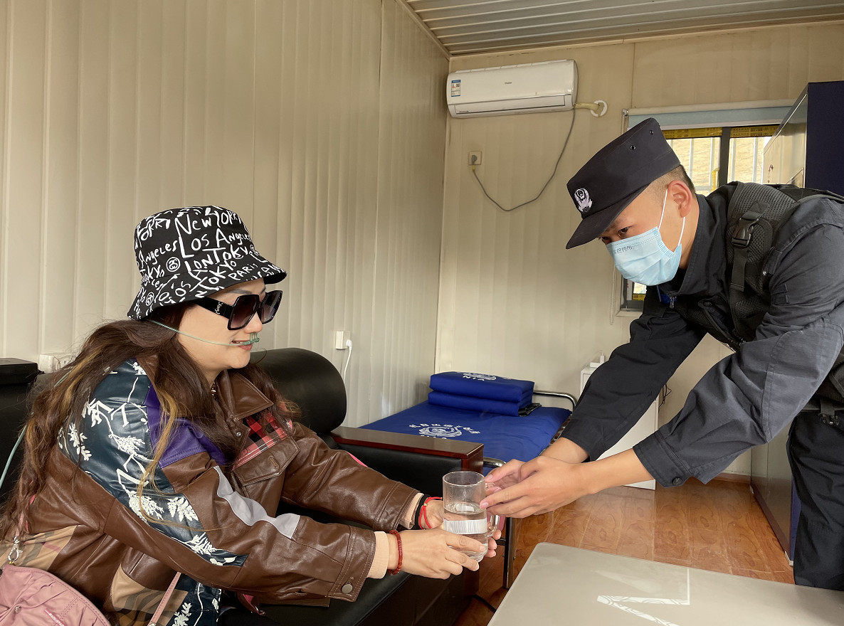 檢查站民警除了檢查出入邊境管理區(qū)人員和車輛以外,還設(shè)置了綠色便民服務(wù)區(qū),專門為長途駕駛的游客提供飲用熱水和一些應(yīng)對高原反應(yīng)的藥品,以及為有吸氧需求的游客提供便攜式制氧機(jī)。據(jù)不完全統(tǒng)計(jì),自上點(diǎn)開展工作兩年以來,曲桑邊境檢查站共計(jì)為游客提供物資藥品幫助240余人次,幫助救援被困游客50余人,獲得了過往群眾游客的一致好評。