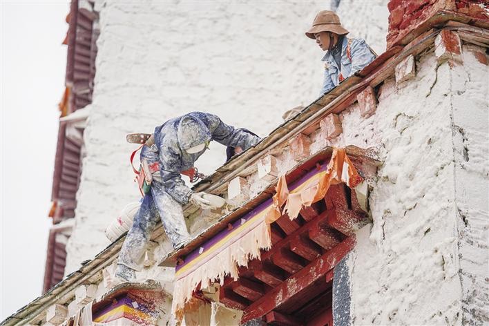 隨著布達(dá)拉宮“粉刷季”開(kāi)始,很多市民群眾自發(fā)前往布達(dá)拉宮,加入“粉刷大軍”的隊(duì)伍。