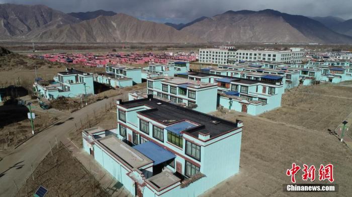 資料圖為航拍西藏拉薩市曲水縣四季吉祥村易地搬遷點。(無人機(jī)照片) 中新社記者 貢嘎來松 攝