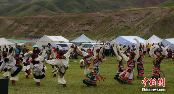 資料圖為西藏那曲市巴青縣牧民在跳鍋莊。 中新社記者 貢嘎來松 攝