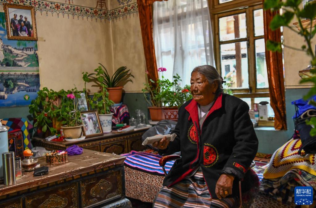馬昌吉老人在家中看電視(12月7日攝)。新華社記者 晉美多吉 攝