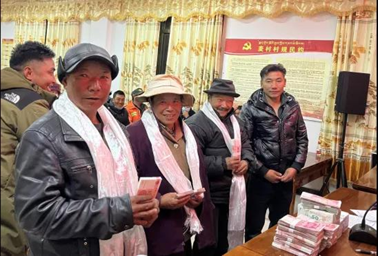 圖為臥龍鎮(zhèn)麥村集體經(jīng)濟(jì)分紅現(xiàn)場(chǎng)