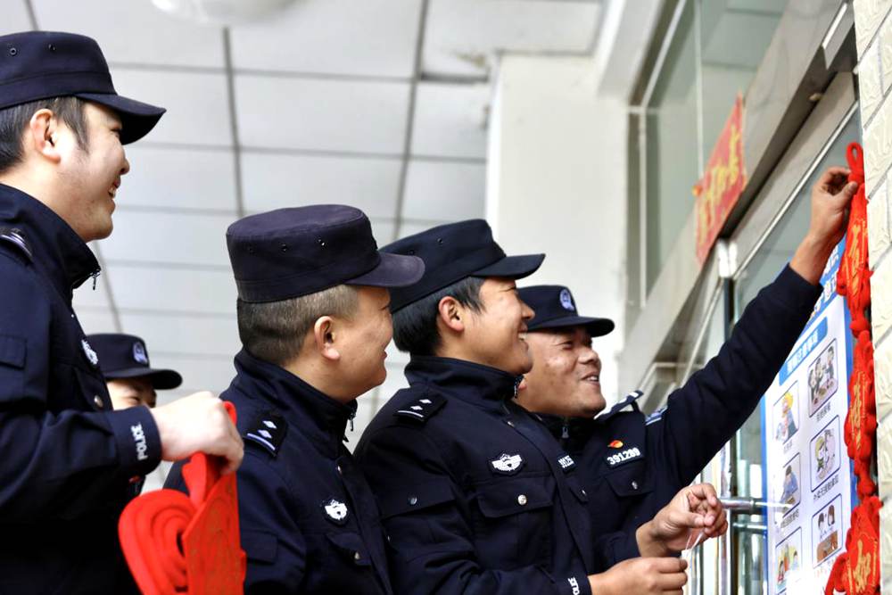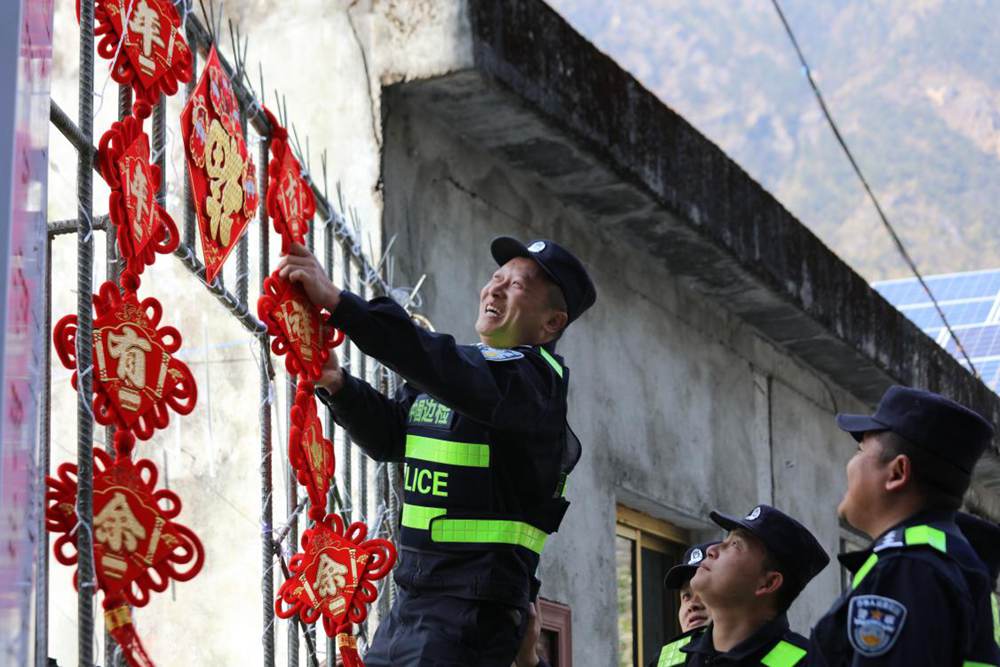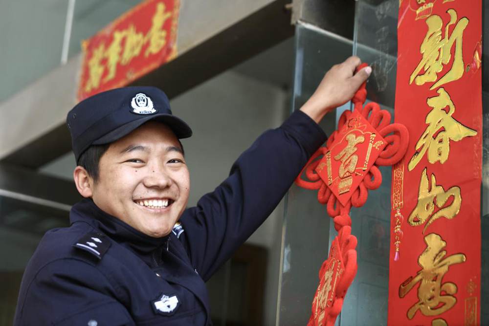 女警察拿著福字準(zhǔn)備去裝扮宿舍過年。索朗次仁攝
