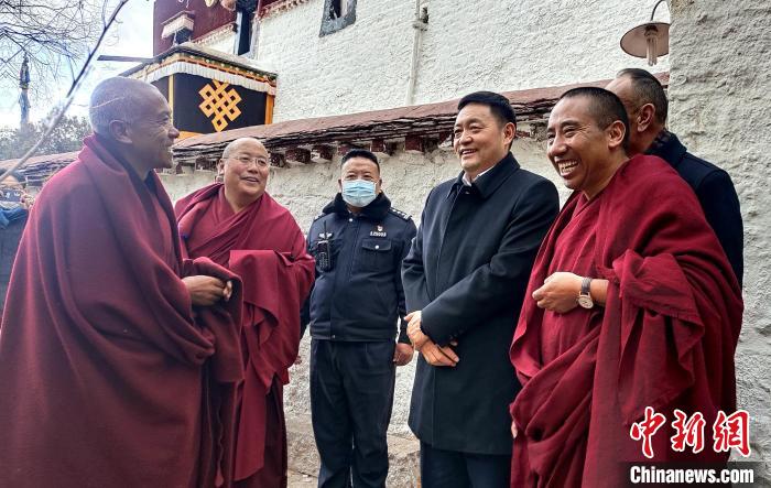 1月28日,調(diào)研組一行先后來到哲蚌寺、城關(guān)區(qū)雪堆白文教集團(tuán)、城關(guān)區(qū)河壩林社區(qū)、色拉寺,看望慰問基層統(tǒng)戰(zhàn)干部、寺管會(huì)干部、駐寺派出所干警、消防和部隊(duì)官兵、寺廟僧人以及民營經(jīng)濟(jì)人士等,并以現(xiàn)場察看、聽取匯報(bào)、座談交流的形式,詳細(xì)了解寺廟管理、僧尼教育、維護(hù)穩(wěn)定、消防安全和民族團(tuán)結(jié)進(jìn)步創(chuàng)建等方面的工作。