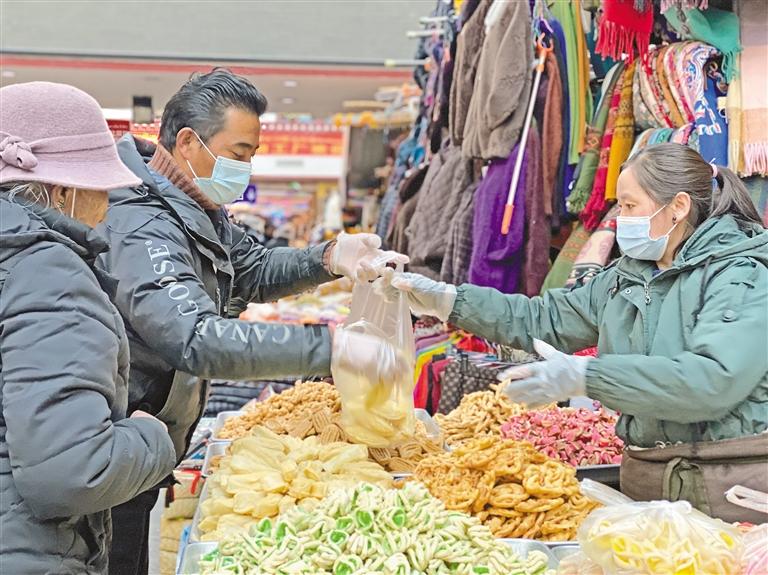 隨著藏歷新年的日益臨近,置辦年貨已然成為老百姓家中的頭等大事。日前,記者一行來到位于北京中路的八廓商城,一睹藏式年貨的特色。