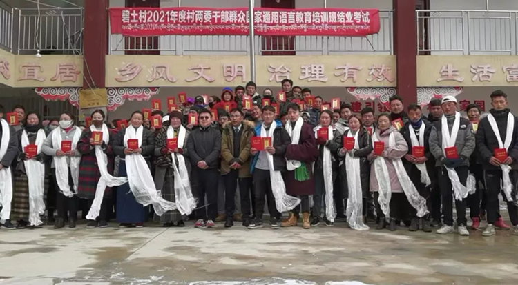 打造“領(lǐng)頭雁”,輻射帶動(dòng)群眾共同進(jìn)步。“歲歲鬧元宵,轟天鑼鼓敲”,進(jìn)一步讓“學(xué)習(xí)”之風(fēng)在基層助力“好學(xué)”之苗生根發(fā)芽,工作隊(duì)在元宵節(jié)開展“2021年度國(guó)家通用語言教育培訓(xùn)結(jié)業(yè)典禮”,從全村116名參訓(xùn)人員中評(píng)選出“學(xué)習(xí)之星”1名,“進(jìn)步之星”2名進(jìn)行表?yè)P(yáng)表彰,樹立學(xué)習(xí)榜樣,激勵(lì)對(duì)標(biāo)對(duì)表,努力學(xué)習(xí)國(guó)家通用語言文字,有利于促進(jìn)各民族交往交流交融。