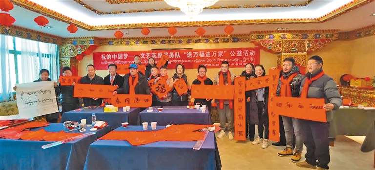 拉薩市文聯(lián)書法家協(xié)會開展送萬福進(jìn)萬家公益活動。