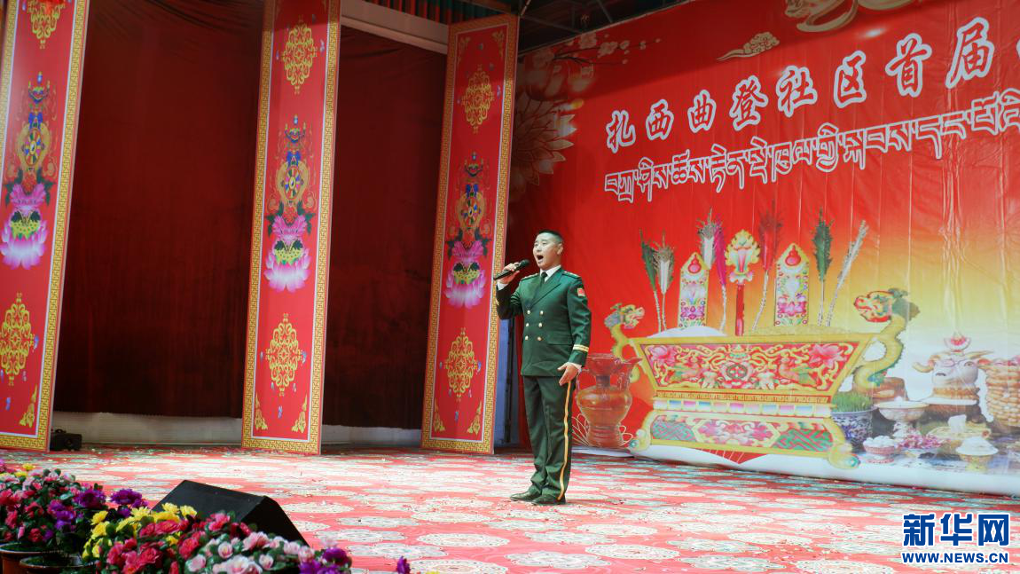 扎西曲登社區(qū)首屆藏歷新年晚會上的個人獨唱節(jié)目《陽光路上》(2月26日攝)。新華網(wǎng) 殷小燕 攝