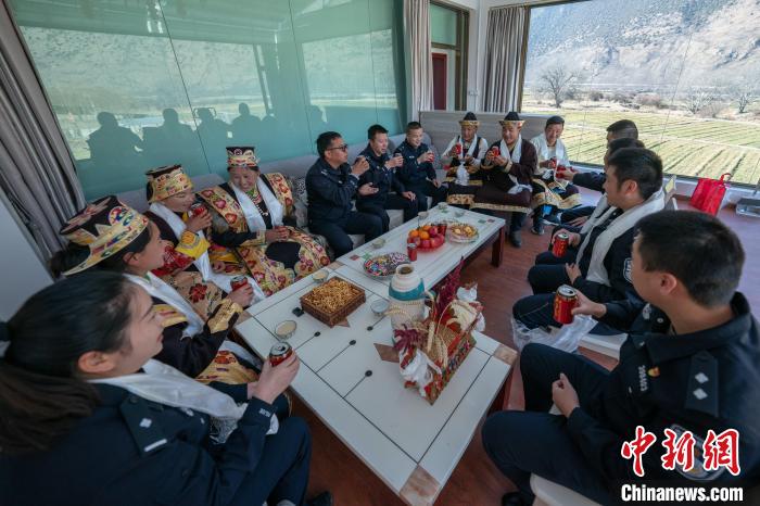 圖為轄區(qū)民眾在林芝市米林縣派邊境派出所內和民警一起過新年。江才云旦 攝