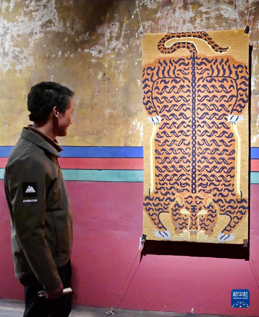 當(dāng)日,名為“智慧和無畏”的“虎毯”展覽在拉薩吉本崗藝術(shù)中心展出。西藏的非遺工作者根據(jù)古代藏毯藏品重新挖掘,整理了以“虎”為主題的圖案,設(shè)計制作了本次展覽作品。本次展覽展出20余件各具特色的藏毯藝術(shù)作品,展覽將持續(xù)到5月初。