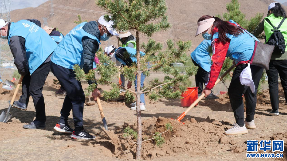 圖為植樹活動(dòng)現(xiàn)場(4月16日攝)。新華網(wǎng)發(fā) 貢桑央吉(實(shí)習(xí)生)攝