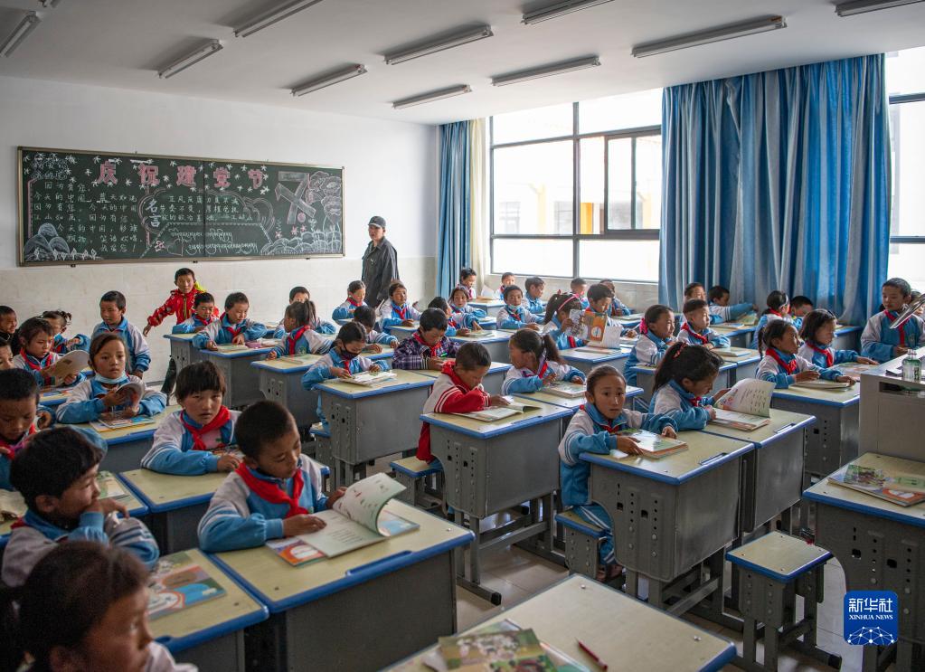 在森布日幸福家園九年一貫制學(xué)校的教室里,學(xué)生們在上自習(xí)(資料圖)。新華社記者孫非攝