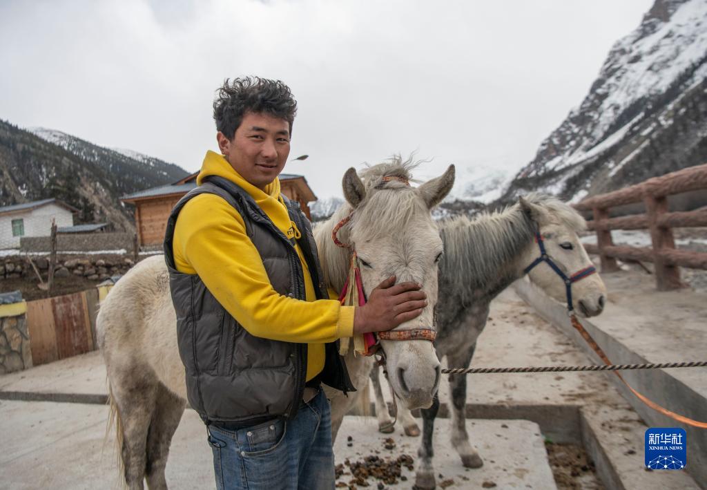 “慢慢來,別摔了?!?8歲的江阿羅布把一名游客扶上馬,帶他前往離村不遠的米堆冰川參觀。
