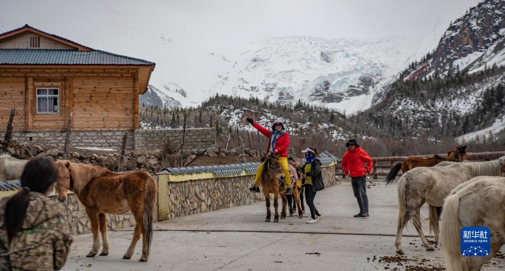 游客騎馬從米堆冰川返回(4月23日攝)。新華社記者 晉美多吉 攝