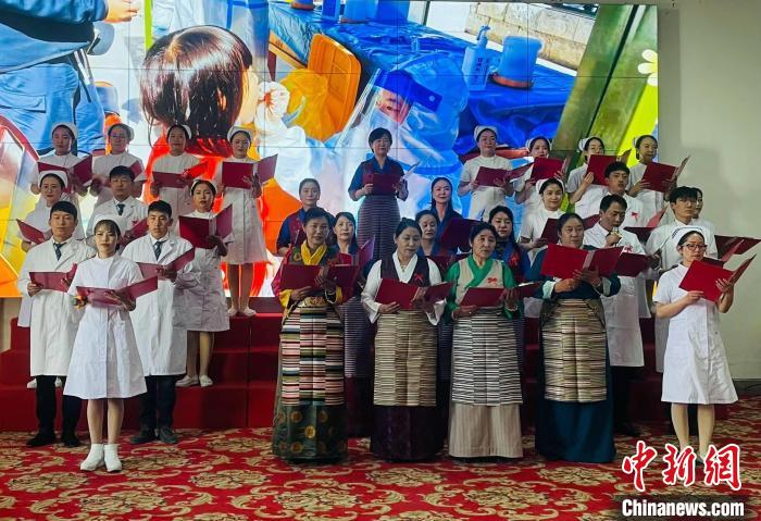 西藏自治區(qū)人民醫(yī)院老中青護(hù)士代表演繹詩(shī)朗誦《提燈女神的贊歌》。 冉文娟 攝