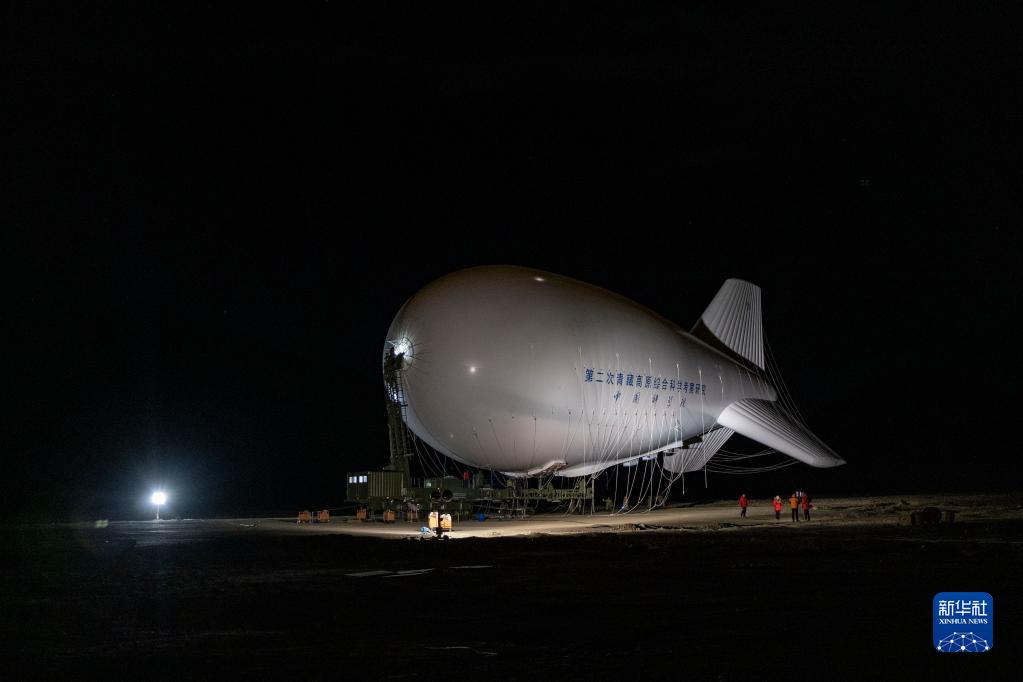 浮空艇在發(fā)放場地準(zhǔn)備升空(5月15日 攝)。新華社記者 孫非 攝