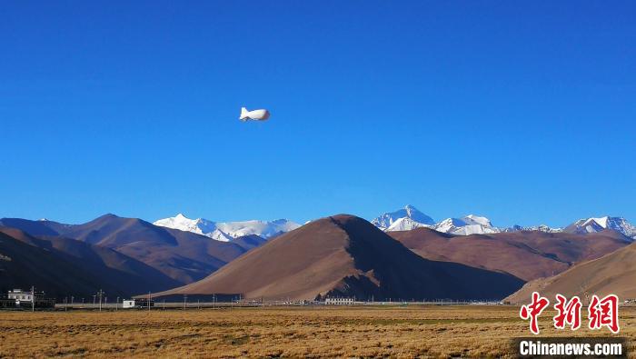珠穆朗瑪峰和洛子峰前的“極目一號(hào)”III型浮空艇?!≈锌圃?供圖