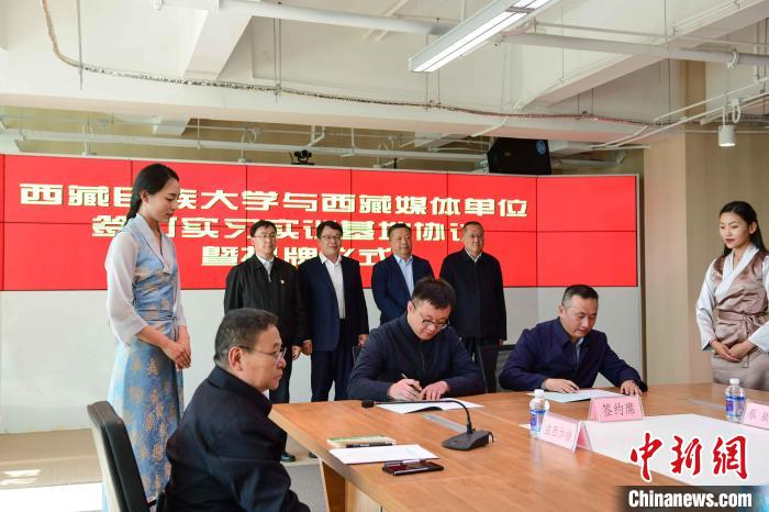 5月27日,西藏民族大學(xué)與西藏日報(bào)社、西藏廣播電視臺、人民網(wǎng)西藏頻道、中國新聞社西藏分社、中國西藏網(wǎng)西藏記者站等媒體單位簽訂實(shí)習(xí)實(shí)訓(xùn)基地協(xié)議暨揭牌儀式在西藏日報(bào)舉行。
