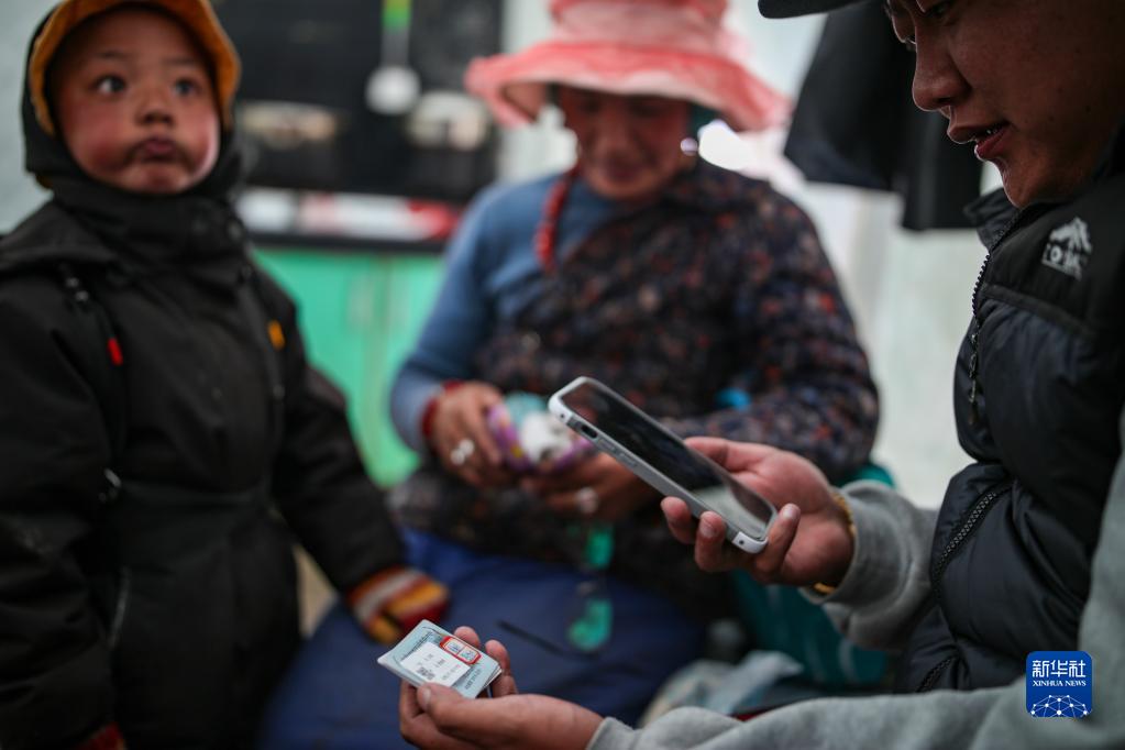 在西藏那曲市比如縣良曲鄉(xiāng)然木塘村蟲草采集點(diǎn),工作人員在幫助牧民其美嘎德進(jìn)行蟲草采集登記,以便進(jìn)行總量統(tǒng)計(jì)(5月25日攝)。新華社記者 姜帆 攝