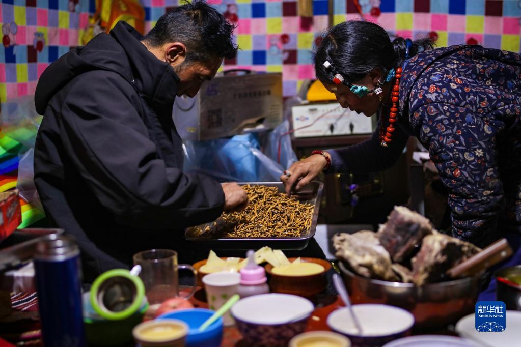 5月25日,牧民在采集蟲草。新華社記者 晉美多吉 攝