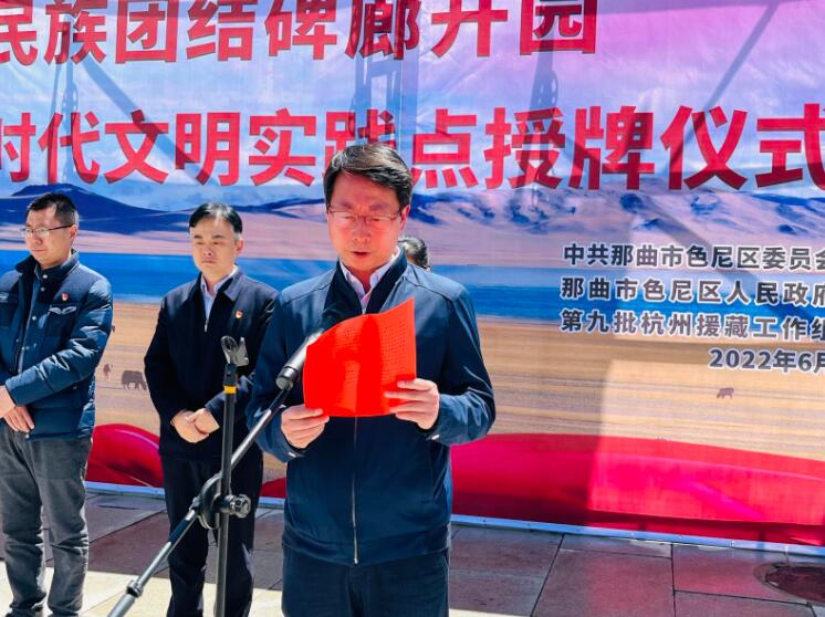 李東表示,西藏首個民族團(tuán)結(jié)碑廊——杭州民族團(tuán)結(jié)碑廊開園暨那曲市新時代文明實(shí)踐點(diǎn)授牌儀式的舉行,標(biāo)志著色尼區(qū)新打造的愛國主義教育和民族團(tuán)結(jié)教育基地正式運(yùn)行,對色尼區(qū)推進(jìn)新時代文明實(shí)踐工作更加有形有為,創(chuàng)建全國民族團(tuán)結(jié)進(jìn)步模范區(qū)具有重要意義。希望色尼各族干部群眾不斷鞏固“團(tuán)結(jié)穩(wěn)定是福、分裂動亂是禍”的思想認(rèn)識根基,維護(hù)祖國統(tǒng)一,加強(qiáng)民族團(tuán)結(jié),旗幟鮮明反對分裂,努力提升民族團(tuán)結(jié)工作的成效,為創(chuàng)建全國民族團(tuán)結(jié)進(jìn)步模范區(qū)作出積極貢獻(xiàn)。