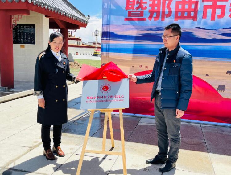 儀式上,那曲市委宣傳部決定將杭州民族團(tuán)結(jié)碑廊設(shè)為那曲市新時代文明實(shí)踐點(diǎn),并進(jìn)行授牌。杭州援藏工作組向色尼區(qū)捐贈價值700萬元的杭州民族團(tuán)結(jié)碑廊書法作品。