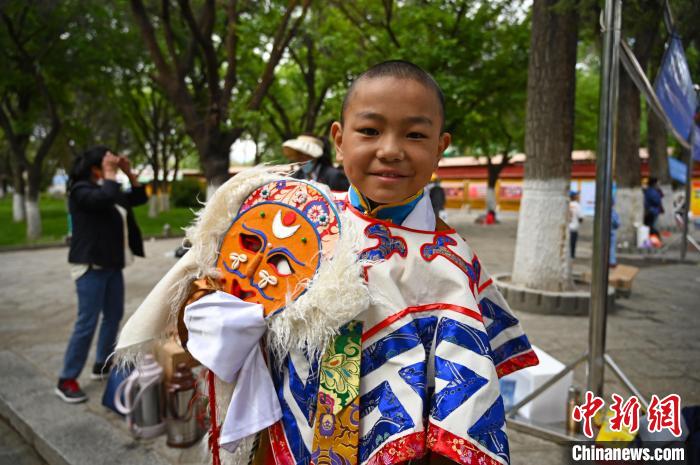 現(xiàn)場(chǎng),藏戲、諧欽、堆諧、鷹笛吹奏等非遺歌舞展示吸引了眾多市民和游客前來觀看?;顒?dòng)中,白瑪多吉是藏戲演出中的小演員。他是城關(guān)區(qū)第二小學(xué)學(xué)生,從一年級(jí)到目前已經(jīng)學(xué)習(xí)了五年藏戲,這是他表演活動(dòng)中規(guī)模最大的一次。他說:“開始是父母讓我去學(xué)習(xí),現(xiàn)在已經(jīng)成為我自己的興趣愛好了,而且這樣的表演能夠讓我更有成就感,也變得更自信了?!?/p>