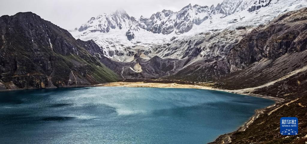 這是5月1日在西藏山南市從白瑪林錯(cuò)方向拍攝的庫(kù)拉崗日冰川(手機(jī)照片)。新華社記者 沈虹冰 攝