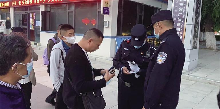 民警使用5G移動(dòng)警務(wù)終端對(duì)過往人員進(jìn)行檢查。圖由布達(dá)拉宮便民警務(wù)站提供