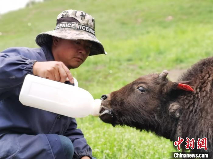 圖為給小牛犢喂奶?!?zhí)砀?攝