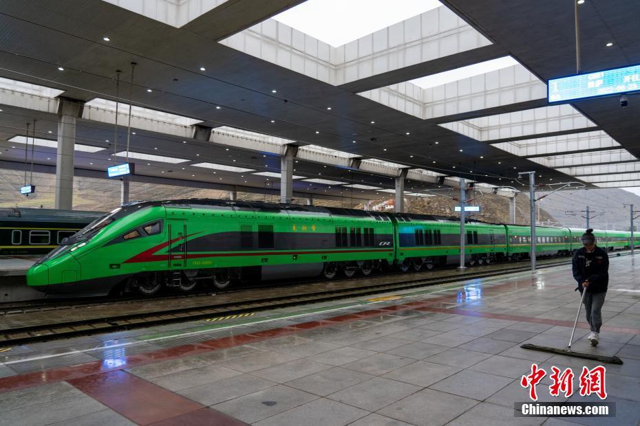 6月25日,西藏第一條電氣化鐵路——拉林鐵路開通運營滿一周年。一年來,累計運送旅客113.7萬人次、貨物4.78萬噸。圖為當日,拉薩火車站內,復興號整裝待發(fā)。 中新社記者 江飛波 攝