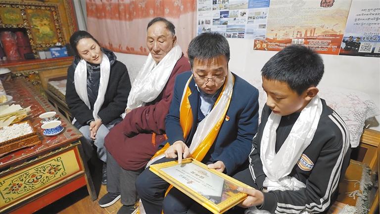 沈陽(yáng)市第九批援藏工作組副領(lǐng)隊(duì)、安多縣常務(wù)副縣長(zhǎng)裴德本來(lái)到資助的貧困中學(xué)生古扎多吉家中家訪。