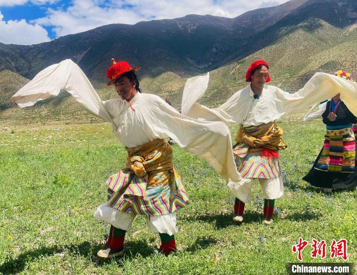 圖為林周縣唐古鄉(xiāng)牧民在草地上跳起熱振曲卓。冉文娟 攝