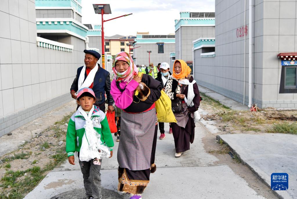 剛剛抵達(dá)森布日安置點的雙湖縣牧民正前往新家(7月19日攝)。新華社記者 張汝鋒 攝