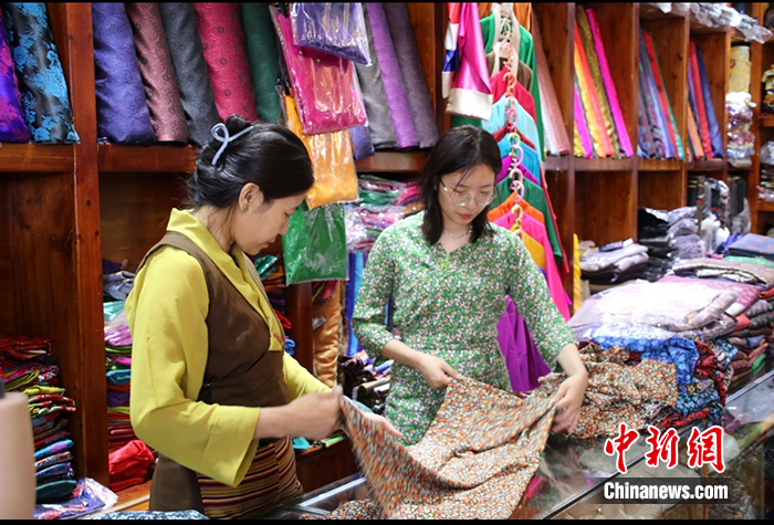 圖為7月20日,旦增卓瑪(右)和媽媽在位于八廓街的自家藏裝店內(nèi)。 中新社發(fā) 扎西旦增 攝
