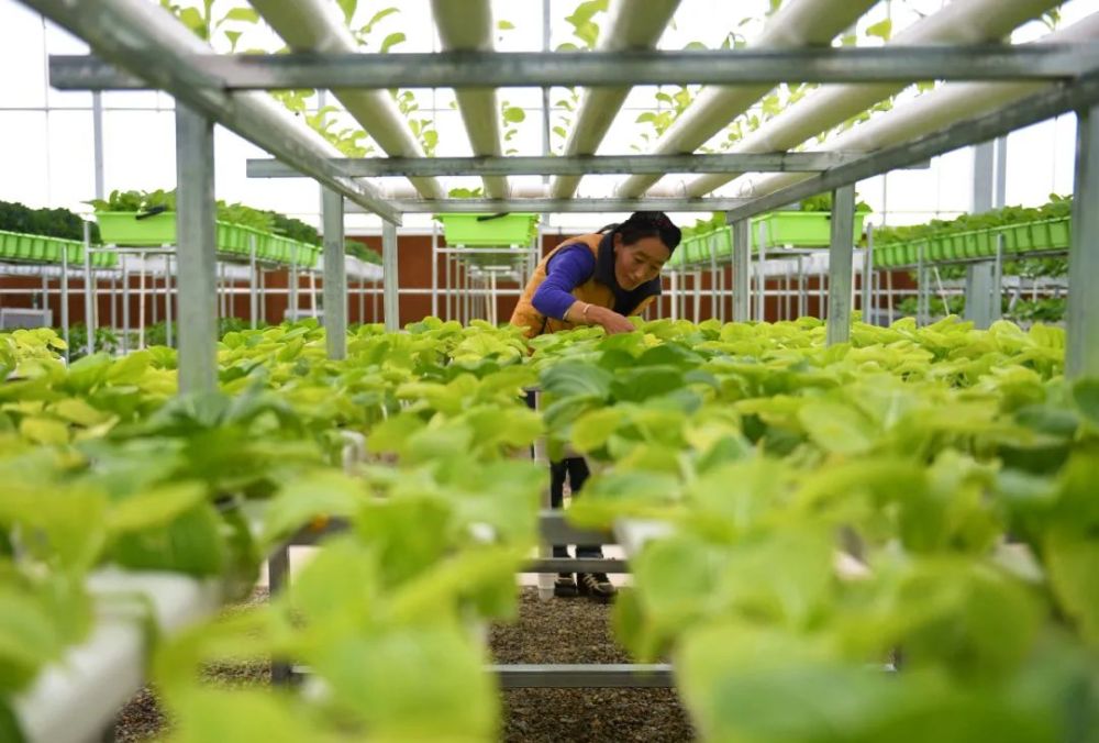 行走在日喀則市白朗縣溫室大棚,傳統(tǒng)方式種植的黃瓜、番茄,掛滿枝頭;無(wú)土栽培的苦苣、茼蒿,青翠繁茂;高原罕見(jiàn)的車(chē)?yán)遄印⒗笾?,晶瑩剔透…?/p>