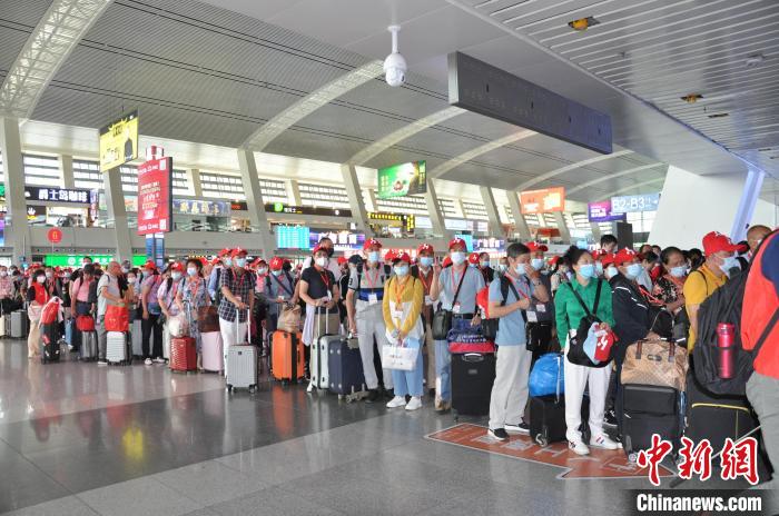 資料圖:乘坐首趟暑期進藏旅游專列的旅客等待進站。才仁加 攝 圖文無關(guān)