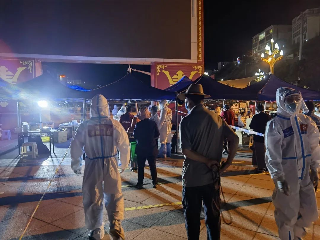 “為了您的安全,請保持1米以上間隔,謝謝?!蓖砩?點(diǎn)多,在茶馬廣場,支隊(duì)三級(jí)消防士張興梁,依然堅(jiān)守在抗疫一線,維持著排隊(duì)做核酸的長隊(duì)。從早上7點(diǎn)開始,張興梁和其他消防隊(duì)員已堅(jiān)守了14個(gè)多小時(shí)?!拔鞑貢円箿夭钐卮?,白天防護(hù)服里面衣服都濕透了,但是到晚上這個(gè)點(diǎn)已經(jīng)干了,正好不用換衣服了。”張興梁打趣的說到。