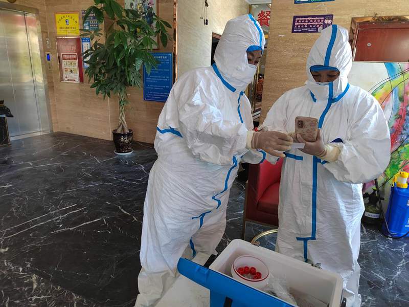 很快她們的申請有了回應(yīng),兩位老黨員變身“大白”,走上了核酸檢測崗位。從上午9點開始,上門為隔離人員進行核酸采樣。一直到夜里11點才回家,卸下“大白”防護服時渾身已濕透?!澳軈⑴c到疫情防控志愿服務(wù)中,做點力所能及的事兒,是我的義務(wù)。”旺前卓瑪說。