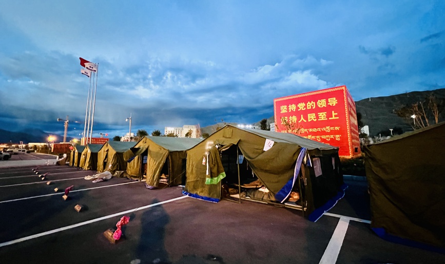 據(jù)介紹,為了盡快解決滯留旅客住宿問題,山南市貢嘎縣有關部門與機場協(xié)調劃出停車場南側區(qū)域,8月20日晚連夜奮戰(zhàn)搭建帳篷,并安排了四名志愿者駐點為旅客服務?!?0日晚間,我們搭建了8個帳篷,今天又增加了4個帳篷,目前共有12個帳篷。”鄒云說。