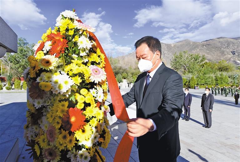 鮮花獻英烈,哀思祭忠魂。在第九個烈士紀(jì)念日來臨之際,9月30日上午,西藏自治區(qū)向烈士敬獻花籃儀式在拉薩烈士陵園舉行,自治區(qū)黨政軍領(lǐng)導(dǎo)同全區(qū)各族各界干部群眾代表一起向人民英雄敬獻花籃,緬懷烈士功績,弘揚革命精神,凝聚奮進力量。