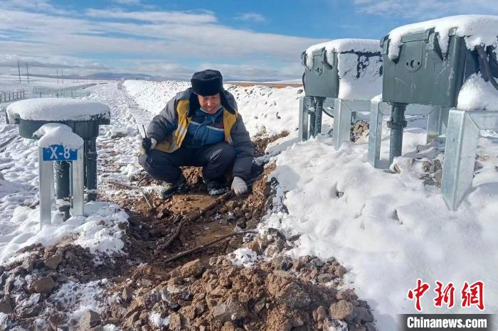 梁海峰在白雪皚皚的青藏鐵路唐古拉南站檢查信號設備?!±顒P豐 攝