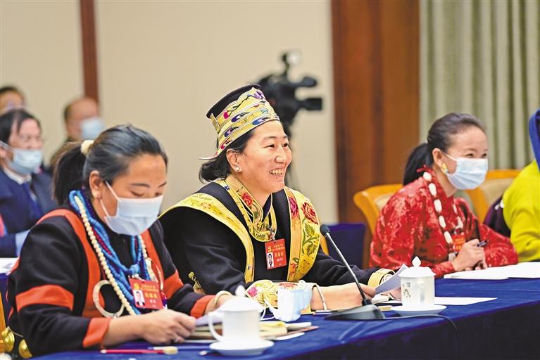 10月17日,西藏代表團(tuán)舉行分組會(huì)議,認(rèn)真討論黨的二十大報(bào)告。 圖為西洛卓瑪代表(中)在會(huì)上發(fā)言。 旦增西旦 攝