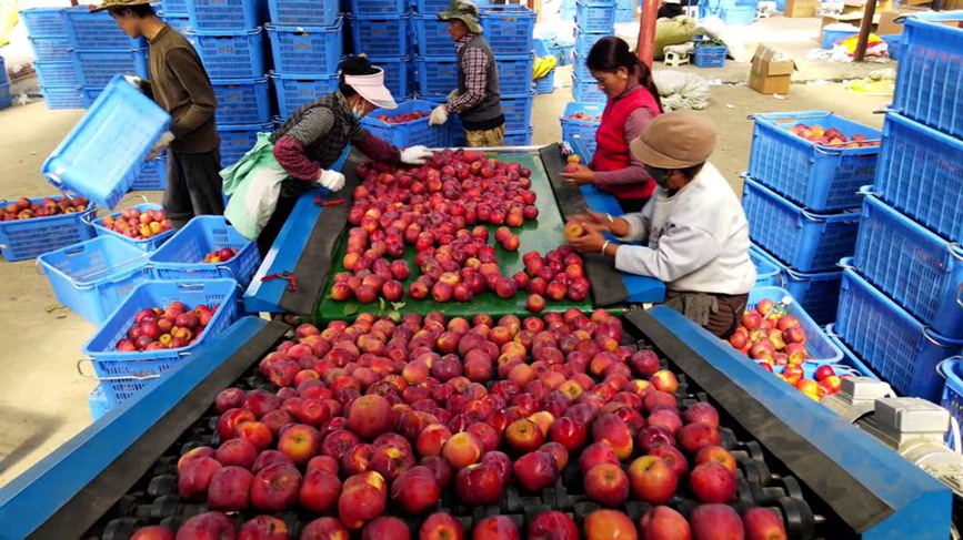 近年來,米林立足高原生態(tài)氣候特點(diǎn),開展蘋果“新品種、新技術(shù)、新模式、新農(nóng)藝”研發(fā)和應(yīng)用推廣,果實品質(zhì)不斷改良。負(fù)責(zé)蘋果園運(yùn)營管理的林芝盛世農(nóng)業(yè)科技有限公司緊緊圍繞“抓產(chǎn)業(yè),調(diào)結(jié)構(gòu),促發(fā)展”的思路,以提質(zhì)增效為出發(fā)點(diǎn),大力引導(dǎo)群眾因地制宜發(fā)展林果業(yè)增收致富。截至目前,已提供1200余人次的短期零散務(wù)工,務(wù)工收入達(dá)200多萬元。進(jìn)入掛果期,每年可提供零散務(wù)工4500余人次,務(wù)工收入可達(dá)100余萬左右。
