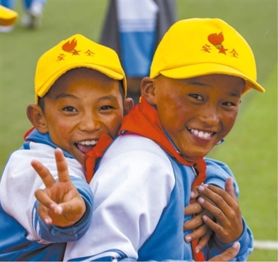 西藏自治區(qū)山南市貢嘎縣森布日小學(xué),孩子們在操場上嬉戲。