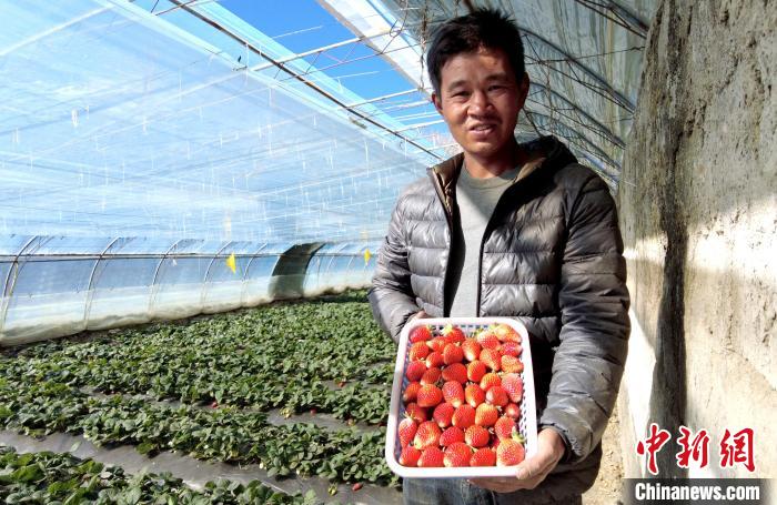 11月25日,西藏拉薩林周縣卡優(yōu)村果農展示剛剛收獲的草莓?!±盍?攝