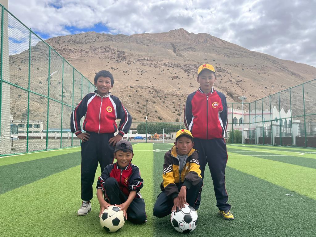 當雄縣中學的學生們正在踢足球(1月5日攝)