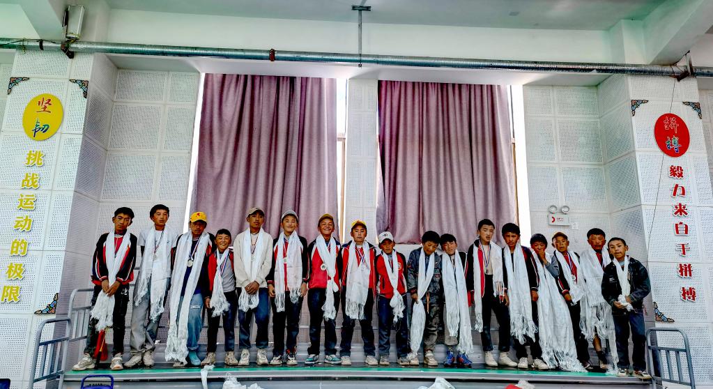 今年6月畢業(yè)前夕,格旦曲桑(前左)和同學在扎西宗鄉(xiāng)完全小學的足球場上合影留念