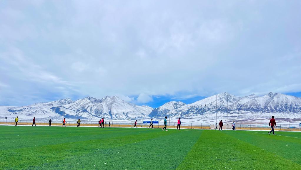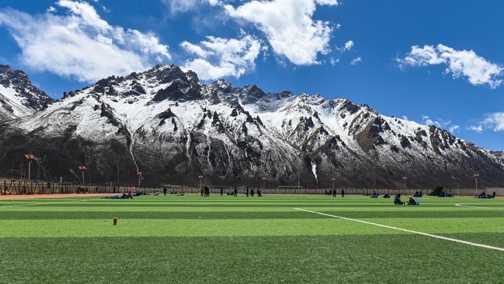這是那曲市嘉黎縣中學的足球場(3月30日攝)